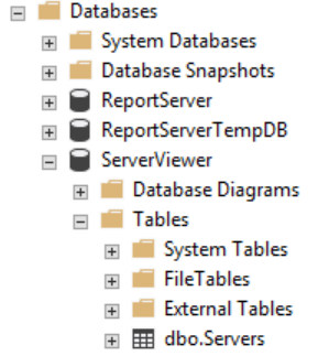 Database needed for Server viewer. Last changed: 05 January 2025 Five steps There are five steps that needs to be done to get the program to work. - Create the database ServerViewer (see script below) with the table Servers on a SQL server = your monitor server.- Insert the monitor servername into the table Servers (see script below). - Download and unzip the zipfile. - Open the config file and update the domain name and servername. - Start the program. The database needed for the program Server viewer can be created with the script below.