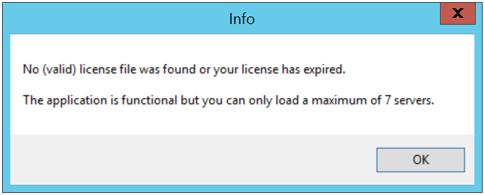 Q What happens when the license is expired for a user? A You can still run the program but then only 7 servers can be loaded and in the graphs you will only see two series. Also every x executions of a query an info message will appear. All other functionality remains the same.
